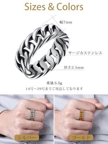 [FindChic] 喜平リング メンズ 指輪 サージカルステンレス アレルギー対応 太め 幅7mm シンプル ファッションリング 男女兼用 プレゼント アクセサリー シルバー 20号