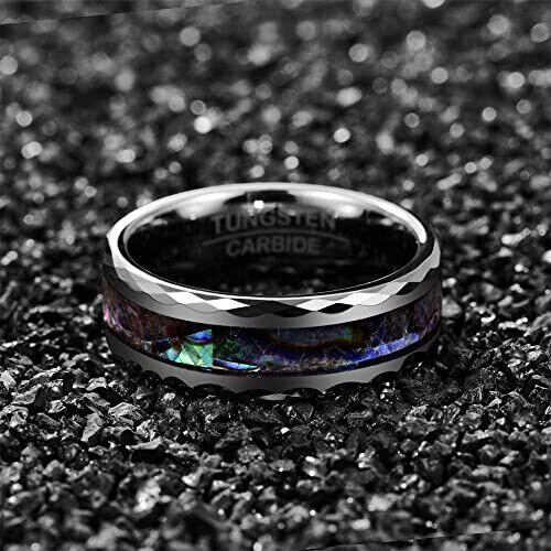【ファッション指輪】眩しいアワビの貝殻&磨かれたファセットエッジ&ブラックタングステンに作成されたのファッション指輪です。 【高品質なタングステン】本物のタングステンカーバイドを作成されて、何十年に経っても変形なし、錆なし、輝き長持ちます。 【アレルギー体質でも安心】タングステンは他種の金属に比べて溶けにくい性質をもっています。金属アレルギーの原因である金属イオンが溶け出さないため金属アレルギーを引き起こしにくいとされています。