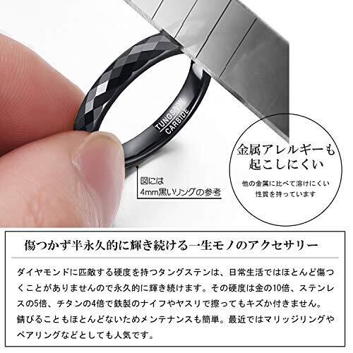 【製品仕様】素材:タングステン。サイズ:横幅約4mm。ギフトボックスと専用クロスが付属されています。より安心してご購入頂けるため、30日間の保証がついており ます。万が一、製品に不具合がありましたら、交換・返品を対応させていただきます 【スタイリッシュなデザイン】リング表面は質感溢れる多面カットにデザインされており、動くたびに光に反射し上品な輝きを放ち、落ち着いた雰囲気を演出してくれます。 シンプルながらも存在感があり、手元をかっこよく魅せます