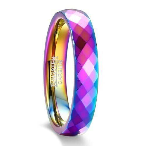083BASE タングステン リング|レインボーカラー|4mm・6mm|鏡面ファセットカット|水に強い・傷つきにくい|メンズ 指輪