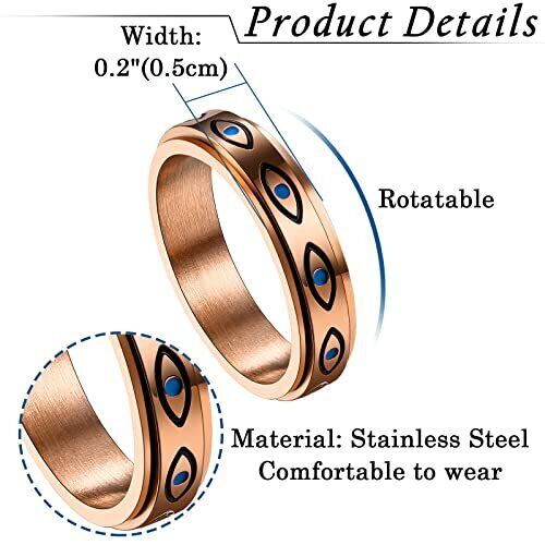Flogno 邪眼 悪魔の目 指輪 リング フィジェット指輪 スピナーリング 可回転 15号 ステンレス製 メンズ 男性 男の子 男の人 不安解消 ストレス発散 魔除け 厄除け お守り 守護 神秘 宗教 復活祭 クリスマス 新年 彼氏にプレゼント ギフト袋付き(ピンクゴールド)