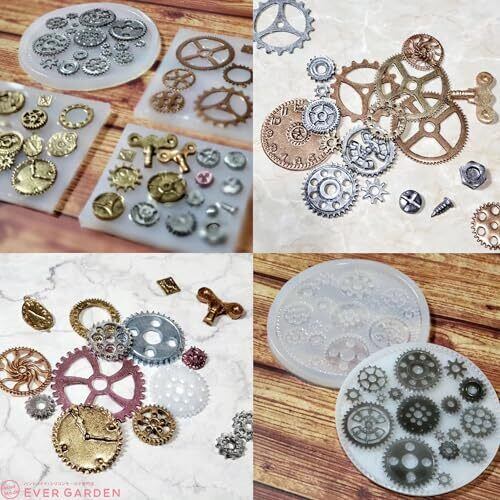 【Ever garden】歯車 4点セット シリコンモールド レジン アクセサリー パーツ 作成 ネックレス イヤリング ピアス ペンダント キーホルダー シリコン モールド アロマストーン 石膏 手作り 石鹸 キャンドル 樹脂 粘土 オルゴナイト シリコン型 型 抜き型 キット 道具 ギア