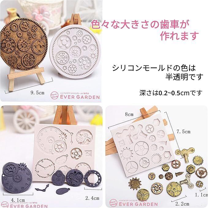 ✅【商品について】色々な大きさの歯車が作れるシリコンモールドです。UVレジン、エポキシ樹脂、樹脂粘土などに ご利用いただけるシリコンモールドです。 ✅【商品サイズ】 完成品のサイズ:画像を参照ください。 耐熱温度:-40℃~+230℃ ✅【注意事項】完成品は付属しておりません。シリコンモールドの型のみになります。 ✅【あんしん保障】 万が一、不良があった場合は、使用の有無に関わらず、交換又は返金対応いたします。 ✅【豊富な品揃え】 他にもたくさんの種類のシリコンモールドを販売しております。商品ページ左上の『Ever garden』をクリックして頂くとご覧頂けますので、ゆっくりとご覧くださいませ。