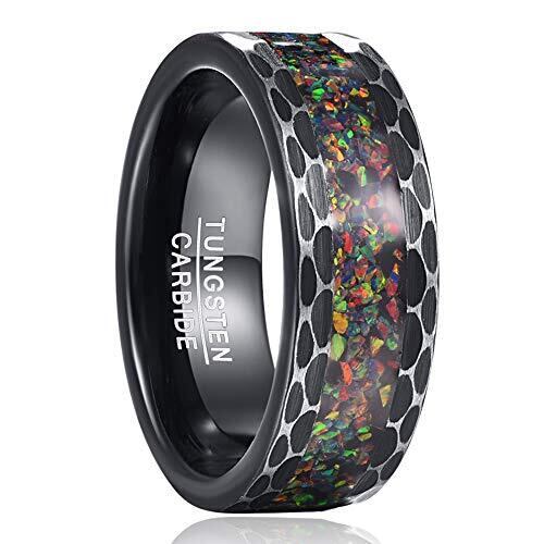 【商品仕様】素材:タングステン、オパール;幅:8mm;厚さ:2.3mm;サイズ:14/16/18/20/23/25号(JPサイズは商品ページの左側のご案内図に参考してください) 【タングステン】スウェーデン語で「重い石」と意味し、非常に重量感のある金属です。 またダイヤモンドに匹敵する硬度を備える金属でもあり、変形に強い、錆にくい、傷が付きにくい、アレルギー対応、輝き長持ちなどの特性で高品質な金属です。高級感溢れる独特の黒光りが魅力的なアクセサリーとして人気を集めています。