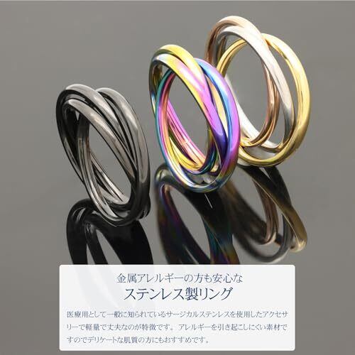 ✅【エレガントな3連リング】シンプルながらも存在感を放つ3連リング。3本のリングが絡み合う独自のフォルムが手元を華やかに彩ります。ステンレスリングならではの上品な輝きが特徴でファッションリングとしても優れたデザイン。カジュアルからフォーマルまで幅広いコーディネートにマッチし男女問わず楽しめるユニセックスリングです。 [共通仕様 幅2.0mm 厚さ1.8mm] [8号 重量3.6g] [11号 重量3.7g] [14号 重量3.9g] [17号 重量4.3g] [19号 重量4.5g] [22号 重量4.8g] [25号 重量5.2g] [28号 重量5.4g] [31号 重量5.6g] [リングセット内容:リング本体・ジュエークロス、ジュエリーポーチ]
