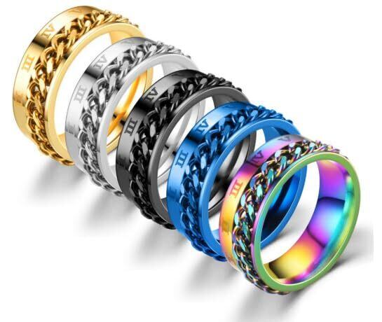 [ILLARELL] リング 指輪 メンズ ステンレス鋼 金属アレルギー対応 不安 緊張 ストレス 解消 回転 スピナー チェーン 喜平 テザー 回る ローマ数字 刻印 おしゃれ 大人 健康 アクセサリー