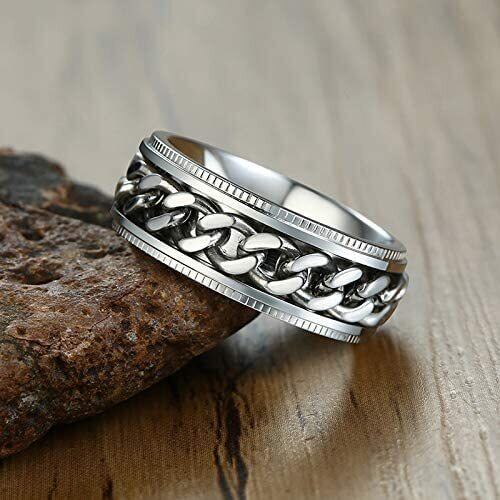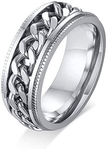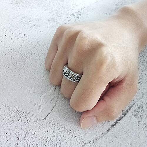 [Rockyu] ブランド メンズ指輪 リング ステレンス製 回転可能なチェーンテザー ローマ数字 おしゃれ 不安やストレス解消 健康アクセサリー (シルバー②, 15)