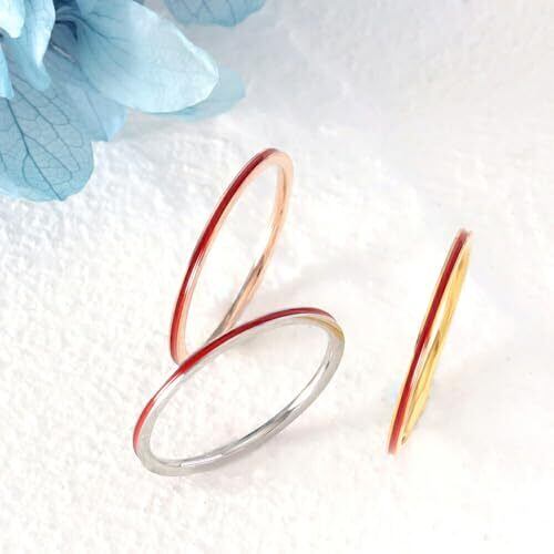 指輪の幅:約1mm ※極細なのでご注意ください。 かなり細いです。 厚み最大:約1mm 重さ 0.3g前後 素材 サージカルステンレス 銀色以外はPVDコーティング 赤いラインはエポキシ樹脂 注意 モニターの都合上、掲載写真と実際の色が異なる場合がございます。