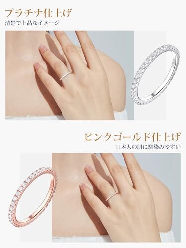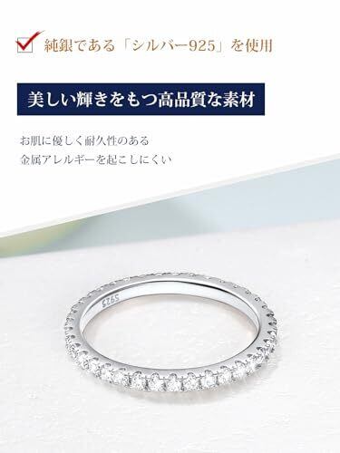 [フルエタニティリング] リングの外周全体にダイヤをあしらっており、どの角度から見ても輝きを楽しめるのが魅力。リングが回ってもトップの見え方が変わらず、都度直すことなく美しさをキープできますよ。 [ジルコニアリング] ダイヤモンドと遜色のない輝きを持つAAA級のキュービッグジルコニア(CZダイヤ)を使用しております。クリアストーンの輝きが、エレガントかつゴージャスな雰囲気を漂わせます。 [安心のシルバー925素材] 地金には上質なシルバー925(スターリングシルバー)を使用しておりますので、金属アレルギーの方にも安心してご使用いただけます。