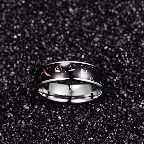 【商品仕様】素材:タングステン、ブラス;幅:8mm;厚さ:2.3mm;サイズ:14/16/18/20/23/25号(JPサイズは商品ページの左側のご案内図に参考してください) 【タングステン】スウェーデン語で「重い石」と意味し、非常に重量感のある金属です。 またダイヤモンドに匹敵する硬度を備える金属でもあり、変形に強い、錆にくい、傷が付きにくい、アレルギー対応、輝き長持ちなどの特性で高品質な金属です。高級感溢れる独特の黒光りが魅力的なアクセサリーとして人気を集めています。