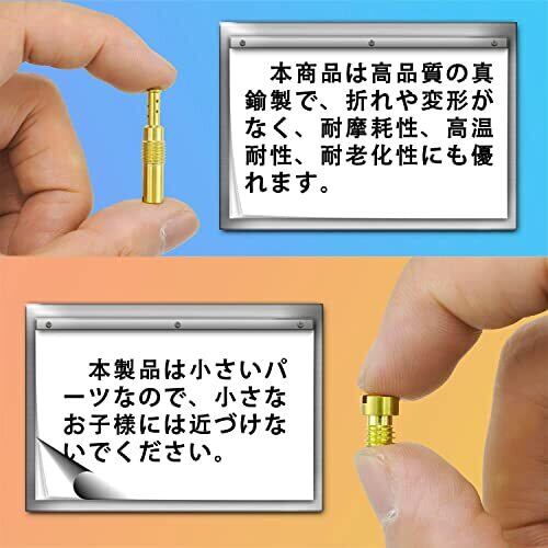 【20個1セットで】10個のメインジェットと10個のパイロットジェット、合計20個を含みます;メインジェット:メインジェット:#100#105#108#110#115#120#125#130#135#140(各1pcs);パイロットジェット:#32#35#38#40#42#45#48#50#52#55(各1pcs)。 【お勧めポイント】本商品は真鍮製で、折れや変形がなく、耐摩耗性、高温耐性、耐老化性にも優れます。番数がしっかり刻印されているため、使用する際には、見やすくて選択しやすいです。合計20個セットでご用意しておりますので、惜しみなく愛車のメンテナンスにご活用下さいませ。20個で、20 サイズのジェットが含まれるため、自由に選択できて適合車種が多いです。 【使用注意ポイント】 ご購入頂く前に、ご自分のキャブレターの適合サイズを確認してご購入ください。本製品は小さいパーツなので、小さなお子様には近づけないでください。作業などを行う際は、必ずエンジン及びマフラーガ冷えている時に行ってください。走行前は、必ず各部を点検し、ネジ部などの緩みがないことをご確認ください。取り付けについては、ご自身での取り付けが不安な方は、専門の方に相談することをおすすめします。 【Pronese製の様々なバイクパーツ】弊社はいろいろな仕様のメインジェット(セット販売)、パイロットジェット(セット販売)、燃料ホース、燃料フィルター、ホースクランプ等のバイク用・車用の製品を販売しております。製品についてご不明な点がございましたら、ご遠慮なくお問い合わせください。 【メーカー保証付き!】 本製品には、輸送中にパケージの破損や初期不良や悪質な商品が出る場合がございましたら、お早めにご連絡ください。