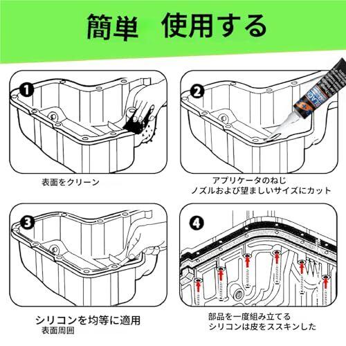 耐熱・耐油性:-51℃~260℃の温度範囲で確実に機能するように配合されています。エンジンオイル、トランスミッションフルード、クーラントへの優れた耐性により、液漏れのないシールを永続的に実現します。 液だれしない精密塗布:優れた液だれ防止技術を採用。垂直面でも滑らかに塗布でき、塗布面をしっかりキープします。先端が細いため、ビードコントロールがスムーズで正確です。 素早いスキン処理で再組み立てを迅速化:15分でスキン処理が完了し、従来のRTV(液だれ防止剤)と比較して部品の再組み立てが迅速化されます。修理作業の貴重な時間を節約します。 ユニバーサルフィット&金属対応:ほとんどの金属(アルミニウム、スチール)およびプラスチックに強力で柔軟な接着力を発揮します。100%非腐食性で、酸素センサーや繊細なアルミニウム部品などの敏感な部品を保護します。 プロフェッショナルグレードの確かな品質:OEM仕様と厳格な性能基準を満たしています。自動車、船舶、小型エンジン用途における信頼性の高いガスケット交換に最適なソリューションです。