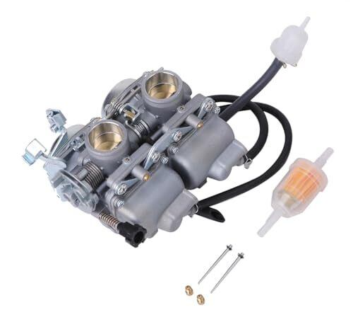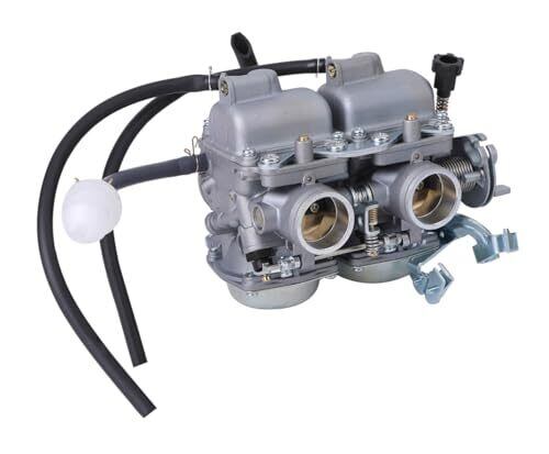 ホンダ 用 レブル250 MC13 CMX250 REBEL250 VE26 キャブレター 社外品です。適合車種:ホンダ レブル250 MC13 CMX250 VE26 等 キャブレターとはエンジン内部にガソリンと空気を混ぜて送り込む燃料供給装置の事を言います。燃料と空気を混ぜ合わせ、理想空燃比で燃焼させて動力源としています。インジェクションが近年多くなってきましたが、キャブレターを搭載した車両も現役で出回っています。 旧車好きな方ではインジェクションにはない、独特な吸気音やフィーリングを好んでキャブ車に乗っている人もいます。バイク好きな方はDIYで整備したり、季節ごとに調整する事を楽しむ事もありインジェクションよりもキャブレターを好まれる方も多いです。 長期間不動車として放置されたり、走行距離が伸びていたりするとガソリンの不純物(ゴミ、埃、錆び等)が付着してジェットが詰まって理想空燃比が保てずエンジン不調を起こす場合があります。セッティングしても調子が悪い、加速がスムーズでなくもたつきがあるという現象はキャブの不調が考えられます。 オーバーホールでは時間と労力がかかりますので、純正互換品のリーズナブルな社外品に丸ごとアッセンブリー交換してしまったほうが結果的に安く済む場合があります。愛車を新車時の滑らかなフィーリングで乗りたい方、動かなくなった愛車を再び蘇らせたい方の整備にお役立て下さい。 パーツが手に入る内にガレージにストックしておけば、いざという時整備することができますので安心です。※取り付けの際、加工が必要となる場合があります。