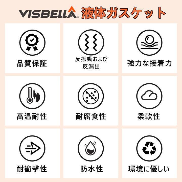 【幅広い用途】液体ガスケット耐熱- バイクマフラー、カムやトランスミッションカバー、サーモスタットハウジング、インテークマニホールドシール、オイルパン、ウォーターポンプのガスケット交換に最適します 【液体ガスケット】Visbella 液状ガスケット 耐熱耐油は自動車製造における接着およびシーリング用に設計されています。一液型のRTVシリコーンシーラントで、あらゆるサイズや形状のガスケットを作ることができます。伝統的ガスケットよりも便利です。 【耐高低温】液体ガスケットは高温や熱サイクル移行に耐性があります。耐熱温度は-80º Fから600º Fです。修理も簡単で、様々なメカニカルシールの課題に簡単に対応できます。 【優れた性能】耐熱液体ガスケットは切削ガスケットに代わる漏れ防止ガスケットへと素早く硬化します。柔軟性があり、高温、低温、高圧、振動下でも収縮や亀裂が発生せず、強固な結合を維持します。 【環境に優しい】液体ガスケット マフラー用は耐油性、耐水性、耐候性に優れます。自動車部品を汚染したり腐食させたりすることはありません。