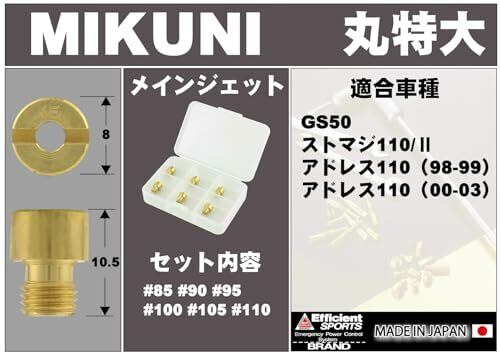 #85#90#95#100#105#110 各1コ入り(6pcs) 【タイプ】(8X10.5)ミクニ(丸特大) 日本製 専用ケース付き 【適合】 GS50 | ストマジ110/Ⅱ | アドレス110(1998-1999) | アドレス110(2000-2003)