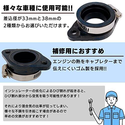 Meliore ラバーインシュレーター キャブレター マニホールド VM26 PE24 PE28 PWK21/24/26/28/30 差込径33mm 取付けピッチ60mm 汎用
