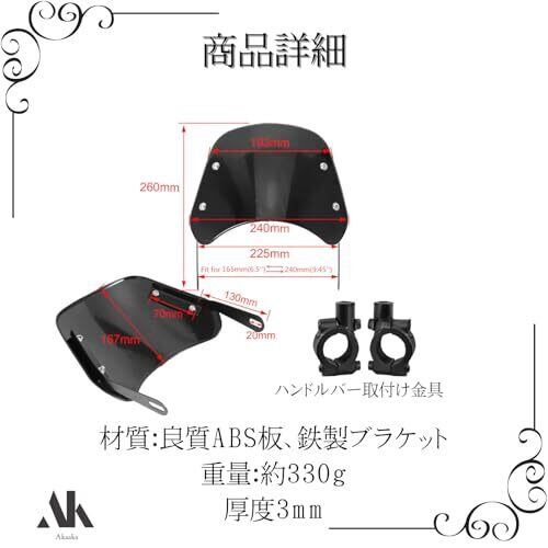Akaaka バイク風防 ウインドシールド 汎用スクリーン ハンドルバー固定式 カウル対応
