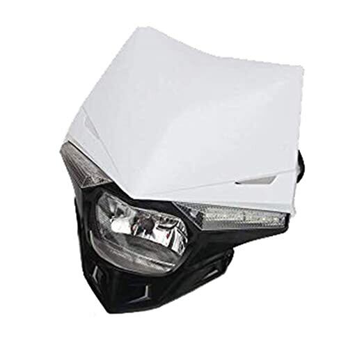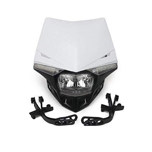 karun バイク ヘッドライト カウル ストリート オフロード LEDディライト ヘッドランプ マスク ターンライト 汎用 (白)