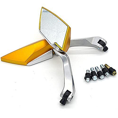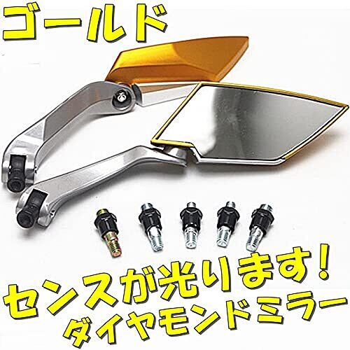 TradeWind バイクミラー ダイヤモンドミラー オートバイ バックミラー リアミラー 正ネジ逆ネジ 8mm 10mm(ゴールド)