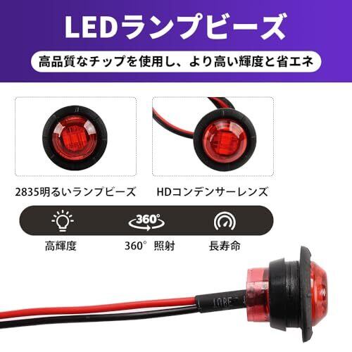 トラック LEDサイドライト マーカーランプ 12V-24V通用 サイドマーカー カウル ウインカー 小型 埋め込み式 バイク ウインカー 2個入 (2個入, レッド)