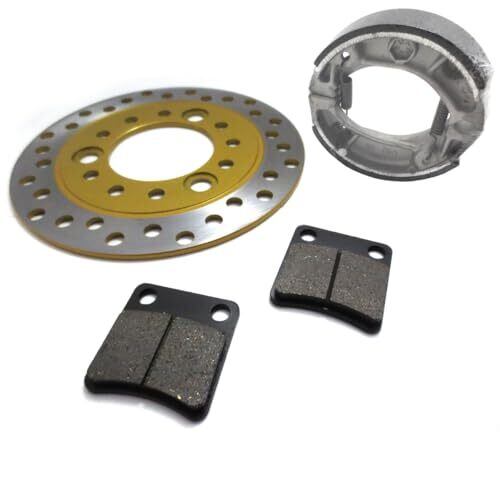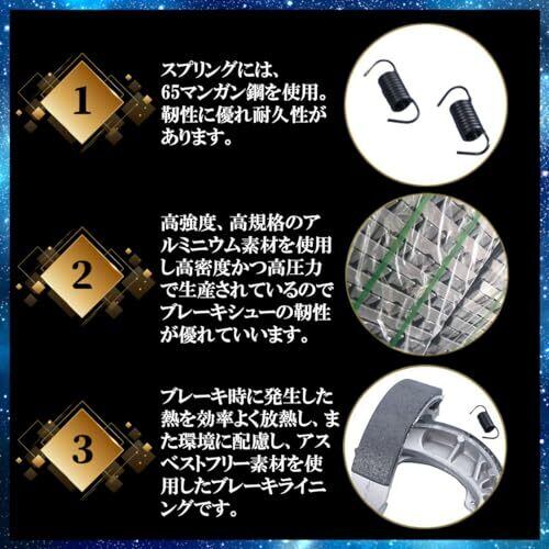 【経年劣化の補修・メンテナンス用に】 性能とコスパに優れたお得なフロント左右ブレーキパッドセット! 適合車種:ディオSR(AF25),スーパーディオ SR/ZX/バハ(AF28),ライブディオ SR/ST/ZX(AF35),スマートディオDX(AF56),スマートディオ Z4 (AF57),G' ダッシュ(AF23) ブレーキパッドはアルミダイキャスト採用により耐久性に優れています! ブレーキシューのスプリングには65マンガン鋼を採用しているので靭性に優れ耐久性があります。 ブレーキ時に発生した熱を効率よく放熱し、また環境に配慮しアスベストフリー素材を使用したブレーキライニングです。 バックプレートは耐熱に優れ、振動や騒音を低減!ディスクローターは鉄を使用し、丁寧に切削加工されており見た目だけてなく耐久性にも優れております。 乗り方によって大きく左右されますが、ブレーキパッドは走行距離で10000km~15000km、ディスクローターは交換時期で30000km~50000kmになります。大きな事故に巻き込まれる前にメンテナンスをしておきましょう! 劣化確認方法:ブレーキパッドの場合、ブレーキキャリパーをのぞき込み、パッドの残量が2mm以下なら交換した方がよい。ディスクローターの場合、ブレーキ鳴きが目立ってきた、錆、傷、ムラが発生している場合交換時期になります。