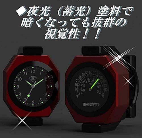 選べる3色 温度計付き アナログ時計 バイク オートバイ 自転車 用 夜光 防水 説明書 付き