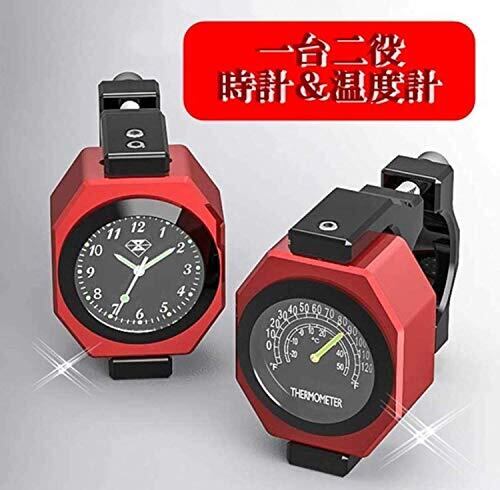 時計本体を回転させると、温度計に早変わり。オシャレなリバーシブル・クロック・ (赤 (レッド.)) 約22~28mmのハンドルに装着可能。日本語 取り付け・取り扱い説明書付。 防水:水没テスト済。雨など日常範囲での水濡れは問題ありません。取り付け可能車種:マウンテンバイク 自転車 ロードバイク ロードレーサー 原付 50cc 125cc 250cc 400cc 500cc 600cc 750cc またはそれ以上の排気量の各種オートバイ等 取り付けに必要な六角レンチ二種付属。ご用意いただく工具等は一切ありません。簡単取り付け仕様。 夜光(蓄光)式で暗くなっても見やすい文字盤です。