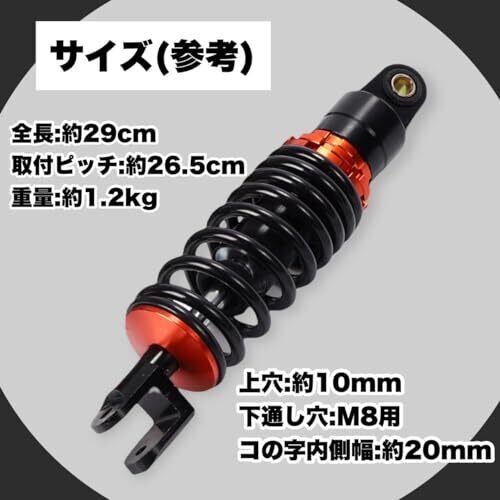 劣化したリアサスの交換、サスペンション性能の向上などを目的とされる方にオススメの商品です。 【適合車種(参考)】 ◎ホンダ ライブディオ ZX スーパディオ AF18AF27 AF28 AF34 AF35 ズーマー など ※車種のグレード・年式によっては、加工が必要な場合や、取り付け出来ない場合がございますのでご購入前に必ずご確認をお願い致します 【サイズ(参考)】 全長:約290mm 取付ピッチ:約265mm 上穴:約10mm 下通し穴:M8用 コの字内側幅:約20mm オフセット スプリングプリロード 無段階調整付き 長さも微調整可能 【セット内容】 本体・ レンチ 【注意事項】 ※取扱説明書は付属しておりません。 ※取り付けに関するサポート及びお問い合わせの対応はしておりませんのでご了承お願い致します。 ※取り付けに自信のない方は専門の業者様、または整備士に依頼して取付けされることをお薦め致します