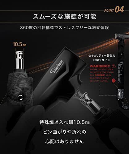 【特殊焼き入れ鋼】 特殊合金チェーンは特殊焼き入れ処理により、高い硬度を持ちます。どんなに分厚いチェーンを実装しても安心感を得るだけで、結局サンダーには勝てない。最低限の厚さと特殊焼き入れ鋼6mmチェーンで油圧カッターなどの無音の攻撃に対抗できる事にフォーカスする事が得策だと考えました。強度はチェーンの厚さよりも焼き入れが重要です。 【軽量コンパクト】 900gと軽量でワイヤーロックの様に嵩張りません。ツーリングの持ち運びも可能なサイズ、重量です。特殊合金であるからこそ実現できる軽くて強いコンパクト収納の鋼チェーン。 【高品質シリンダー】 純銅を使用したシリンダーは精密に加工され、耐久性に優れます。屋外で使用するバイク用のカギはロックが解錠できなくなるトラブルが一定数発生します。高品質なシリンダーを採用する事で、そのようなトラブルを起こしにくくする事が重要です。 【防犯性】 一見キーは一般的なピンタンブラー錠に見えますが、超極薄0.6mmの鍵穴とS字形状などのアンチピッキング技術が採用されています。キーナンバーをお控え頂き、ご要望があれば1~2週間で複製しお届けする別途サービスを行っております。 【商品詳細】 ■チェーン長さ:1000mm、■チェーン厚さ:6mm、■材質:〔チェーン〕特殊焼き入れ鋼、〔シリンダー〕銅、〔ケース〕ポリカーボネート、〔スリーブ〕ナイロン900D、〔シリンダー〕、■重量900g、■セット内容:チェーンロック、鍵2本 ■取扱説明書(オンラインのみ):環境負荷の軽減を目指した脱炭素化への取り組みとして、紙媒体での同封を控えさせていただいております。Kaedear公式サイトの各商品ページから閲覧またはダウンロードが可能です。 【メーカー保証】 ■メーカー保証期間:1年(ご購入日と同日が期限) カエディアではお客様にご満足頂ける様、販売後もサポートさせて頂きます。 商品のご不明な点はもちろん、バイクへのお取り付けに関するご相談は、国家整備資格を保有したスタッフがおりますので、専門知識に対しても的確に対応させて頂きます。 万一、製品不良に起因する不具合と診断される場合は、弊社のメーカー保証規定に基づき審議させて頂き、メーカー保証による無償での修理、交換を行わせて頂きます。業務用に使用される際は、メーカー保証期間を半分の期間とさせて頂きます(例:メーカー保証期間が1年の場合、6ヶ月となり、ご購入日の月に6ヶ月を加算した同日が期限)詳細は公式サイト内メーカー保証規定をご覧下さい。 お取り付け後、ご使用後でも、対応させて頂きます。日本メーカーとして、おもてなしの心で対応致します。先ずはお気軽にご相談下さい。