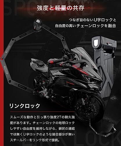 【特殊焼き入れ鋼】 特殊鋼合金スチールバーは浸炭焼き入れ処理により、15Tの油圧せん断に耐えられる高い表面硬度を持ちます。どんなに分厚いスチールを実装しても安心感を得るだけで、結局サンダーには勝てません。厚さ5mmのスチールバーで油圧カッターなどの無音の攻撃による盗難に対抗できる事にフォーカスする事が防犯上の得策だと考えました。せん断にはスチールの厚さよりも焼き入れによる表面硬度が重要です。 【リンクロックの特長】 高いせん断耐久強度を持ちながら1325gと軽量。スチールバーのリンク部分にも高品質なリベットを採用し、スムーズな動作と引っ張り強度2Tの耐久強度があります。チェーンロックの地球ロックしやすい自由度を維持しながら、鎖状の連結では無くU字ロックのような接合部分が無いスチールバーをリンク形式で接続し、軽量で強度がありながら地球ロックも可能。コンパクトで持ち運びがしやすいチェーンロックとU字ロックの良いとこ取りがリンクロックです。 【高品質キーシリンダー】 純銅を使用したシリンダーは精密に加工され、耐久性に優れます。屋外で使用するバイク用のカギはロックが解錠できなくなるトラブルが一定数発生します。高品質なシリンダーを採用する事で、そのようなトラブルを起こしにくくする事が重要です。 【鍵の防犯性】 キーシャッターが未舗装の駐輪場での遺物噛み込みから保護。 一見キーは一般的なピンタンブラー錠に見えますが、超極薄0.6mmの鍵穴とS字形状などのアンチピッキング技術が採用されています。キーナンバーをお控え頂き、ご要望があれば1~2週間で複製しお届けする別途サービスを行っております。 【商品詳細】 サイズ〔本体〕■縦:193mm、幅88mm(折り畳み)■長さ:1100mm、〔スチールバー〕■厚さ:5mm/8mm、幅23mm、ジョイント数:8か所、■材質:〔シリンダー〕銅、〔ケース〕ポリカーボネート、〔スチールバー〕特殊焼き入れ鋼、プラスチックコート、■重量:1325g、■セット内容:リンクロック、ホルダー、鍵2本 ■取扱説明書(オンラインのみ):環境負荷の軽減を目指した脱炭素化への取り組みとして、紙媒体での同封を控えさせていただいております。Kaedear公式サイトの各商品ページから閲覧またはダウンロードが可能です。