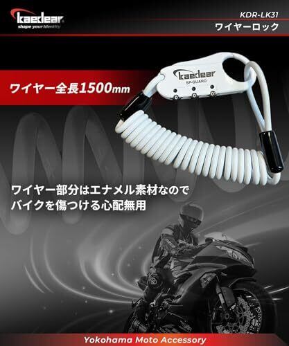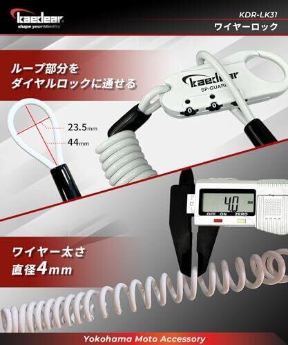 Kaedear(カエディア) バイク ワイヤーロック ヘルメットロック コンパクト ダイヤルロック 鍵 盗難防止 ヘルメット シートバック 4mm カールコード 1500mm 形状記憶 SP_GUARD Type-wire KDR-LK31 (ブラック, 1500mm/4mm)