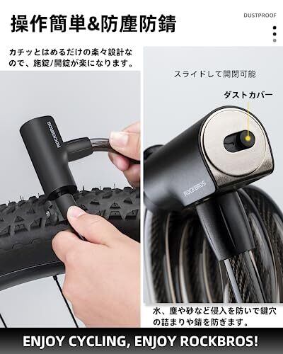 ROCKBROS 自転車 鍵 ロック ワイヤーロック 頑丈 盗難防止 横断面直径約13mm ケーブルロック 亜鉛合金 防水 錆びにくい 携帯便利 長115cm ロードバイク MTB クロスバイク バイク 鍵2本付