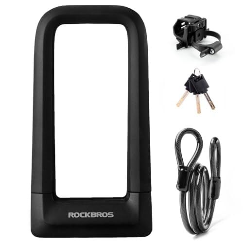 ROCKBROS(ロックブロス)自転車 鍵 U字ロック カギ式 バイクロック ワイヤー付き 頑丈 盗難防止 高い耐切断性 横断面直径22mm 重量感 シリコンカバー 持ち運びやすい クロスバイク 鍵3本付き