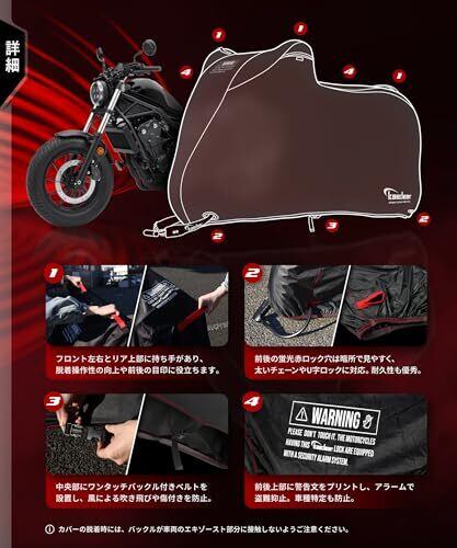 Kaedear(カエディア) バイクカバー アメリカン 大型 750㏄/1100㏄ ~ バイク カバー 盗難防止 ロック穴 風飛び防止ベルト 撥水 ウェザーシールド KDR-C2-4L (260×155×115)