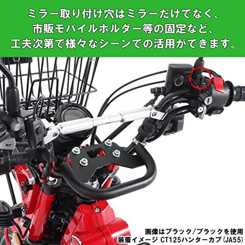 汎用 適合車種【取付確認済み】ビーウィズ50 : (SA44J/SA53J)1VC | ビーウィズ125 : (SEA6J)BG1 | マジェスティS : (SG28J)2LD | ズーマーX : JF52 | PCX125 : JK05-1000001~1199999/JK05-1200001~/JF81/F56/JF28 | PCX125E:HEV : JK06 | PCX125ハイブリッド : JF84 | PCX150 : KF18/KF30/KF12 適合車種【取付確認済み】PCX160 : KF47-1000001~1199999/KF47-1200001~ | ADV150 : KF38 | ADV160 : KF54 | クロスカブ110 : JA60 | モンキー125 : JB02/JB03/JB05 | ダックス125 : JB04/JB06 | グロム : JC61/JC75/JC92 | CT125ハンターカブ : JA55/JA65 | CB125R : JC79/JC91 | CBR125R : JC50 適合車種【取付確認済み】CB250R : MC52 | CL250 : MC57 | Z125-プロ : BR125H 等 ※CRF250L/ラリー(MD44/MD47)には使用不可 M10ミラー穴付 ボルトオン | キー2個付属 装着箇所 : ミラーホルダー、レバーホルダーブラケット部