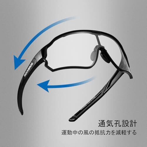 ロックブロス 調光サングラス 自転車 ロードバイク サイクルサングラス メガネ 軽量 紫外線カット 防風 アイウェア 登山 ランニング 通勤 ユニセックス