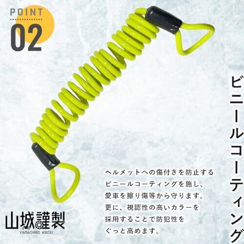 山城(Yamashiro) バイク用ロック 謹製 YKL-003 ディスクロック ワイヤーケーブル ネオン 1500mm ディスクロック外し忘れ防止 YKL003-NE