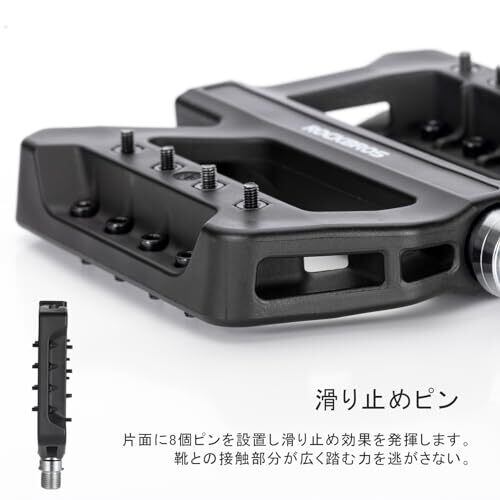 ROCKBROS(ロックブロス)自転車 ペダル フラットペダル 大面積 滑り止め ナイロン繊維 9/16インチ ロードバイクペダル 軽量 高グリップ スパイク付き MTB 耐久性 クロムモリブデン鋼 防水 黒 青 緑 橙 左右セット