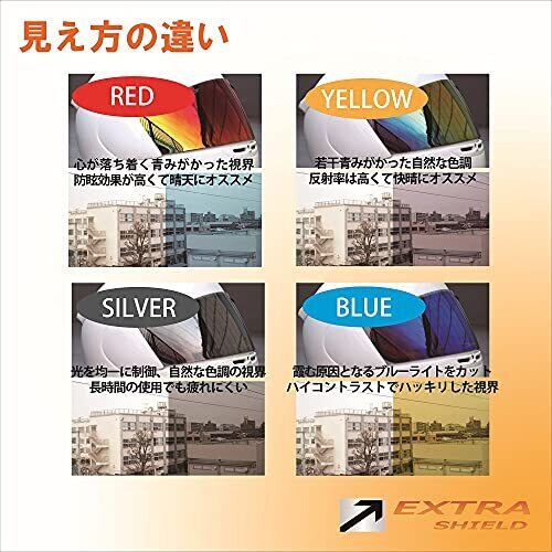 メーカー:山城(yamashiro) ブランド:EXTRAシールド(エキストラシールド) カラー:スモーク/シルバー 適合:TOUR CROSS3 特徴:歪みが少なく目に優しいミラーシールド (ベースシールドはメーカー純正品)