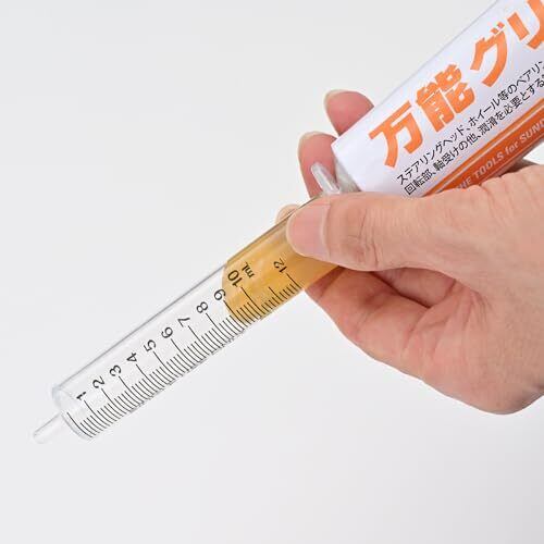 少ない量の液体を測るときに便利なミニシリンジ 手を汚す事なく細部のグリスアップも可能 容量:10ml 本体:PVC ゴム部分:ブタジエンゴム