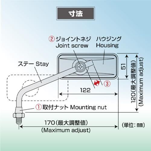 鏡部寸法:44(H)×115(W)mm 本体重量:287g 仕様:10mm正ねじ 内容:本体×1、ネジ径変換アダプター×1、高さ調整アダプター×1 材質:ABS+亜鉛ダイキャスト+鉄