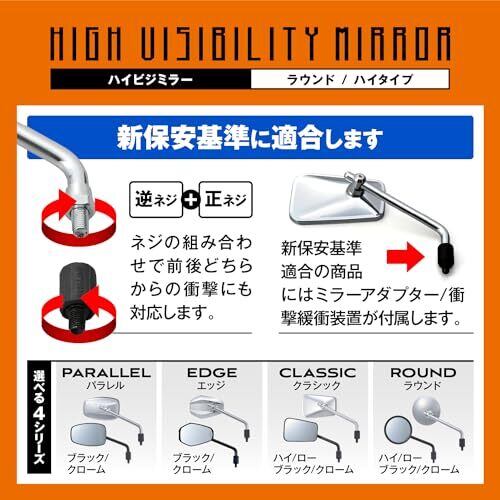 デイトナ(Daytona) バイク ミラー 10mm 正ネジ 耐振 広角 新保安基準適合 ハイビジミラー ラウンド ハイ ブラック 左右共通 片側1本 98797