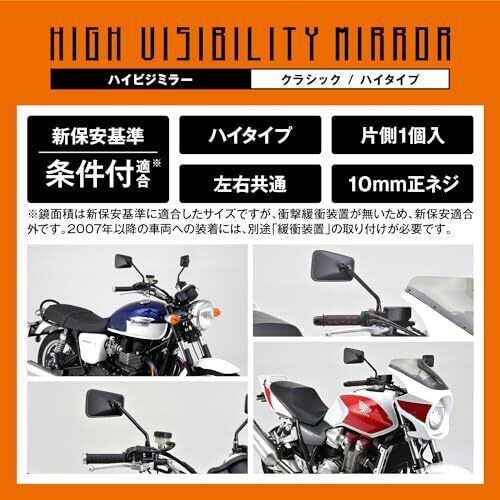 デイトナ(Daytona) バイク ミラー 10mm 正ネジ 耐振 広角 ハイビジミラー クラシック ハイ ブラック 左右共通 片側1本 13309