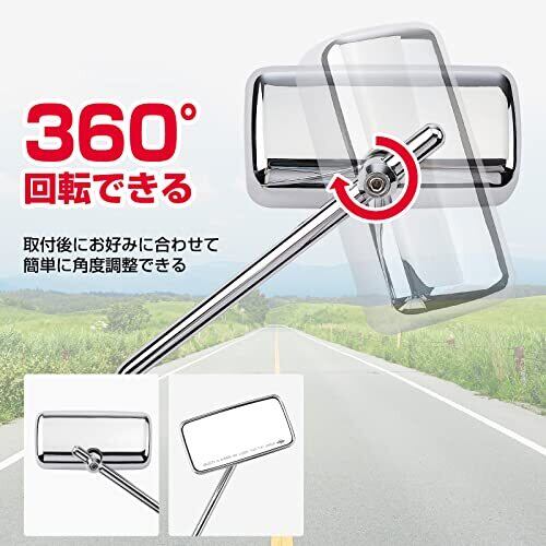 KEMIMOTO バイクミラー 10mm 左右セット オフロードミラー 角型 可動式 オートバイ 用 メッキ ヤマハ グロム セロー クロスカブ ハンターカブ モンキー yamaha MT-07 MT-09 pcx CT125 CRF250L カワサキ