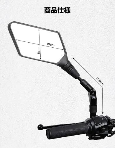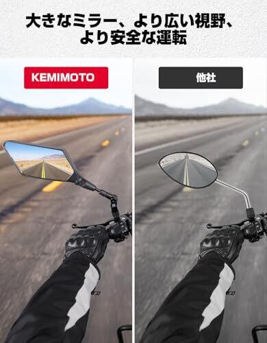 【多角度調整可能】鏡面は360°調整でき、ステー部分は180°調整できるバイクミラーです。工具なしで直接調整でき、走行中の障害物を素早く避けられ、快適な視野を自由に調整できます。 【視界抜群&車検対応】180*80mmサイズの大きい鏡面で、車検に対応するだけでなく、昼夜を問わず高精細で広い視野を提供します。【振動対策】最新の緩み止め加工ネジを採用され、運転中安定したクリアな視界を確保します。 【取付簡単・汎用性高い】パーツの改造は不要で、誰でも簡単に交換できるバイクミラーです。左右ミラーのネジ径は10mmの汎用品で、多くの車種に対応できますが、ご購入前に必ずご愛車のネジサイズをご確認ください。 【商品仕様】セット内容:バイクミラー*2、M10正ネジ*2、M10逆ネジ*1、KEMIMOTO独自開発のミラークランプ*2、ネジカバー*2、14×17mm両口スパナ*1、六角レンチ*1 【品質対応】KEMIMOTOの商品は12ヶ月の保証期間があり、商品には何か不備や不明点がございましたら、弊店までお気軽にご連絡ください。