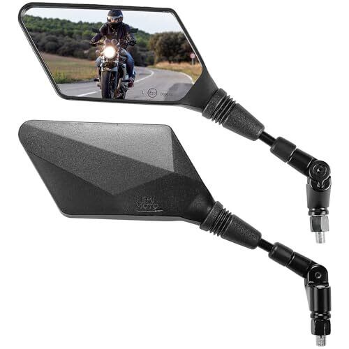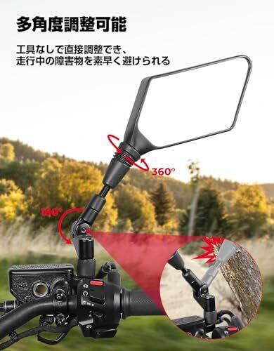 KEMIMOTO バイク ミラー 10mm 左右セット オフロードミラー 汎用 角型 取付簡単 角度調整可能 可動式ミラー 車検対応 ブラック KM6256