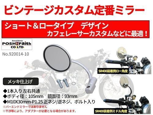ポッシュフェイス(POSH FAITH) ポッシュ(POSH) バイクミラー スタジアムラウンドミラー タイプ2 左右共通(1本入り) M10X30mm-P1.25 正ネジ/逆ネジボルト付属 SR400 | SR500 等 メッキ 920014-10