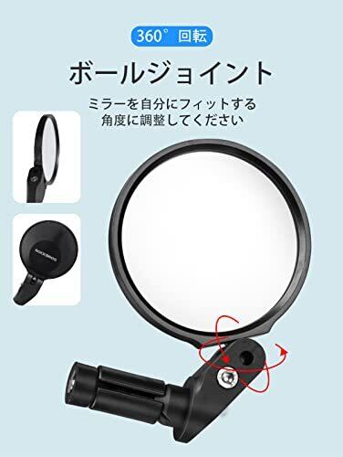 ROCKBROS(ロックブロス)自転車 ミラー バーエンド バックミラー サイドミラー 左 右 セット 凸レンズ 平レンズ 小型 360°回転 取り付け簡単 広視野角 事故防止 Φ16-22mm対応 ロードバイク クロスバイク