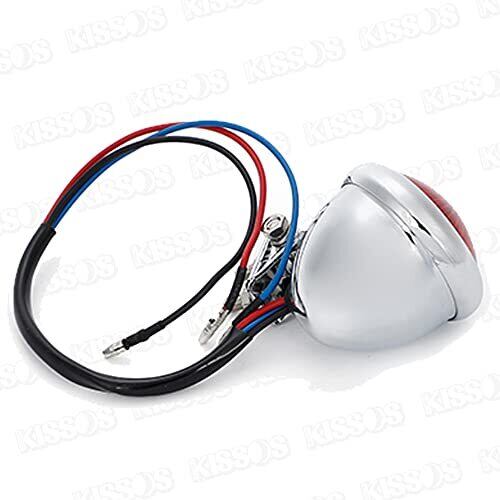 バイク テールランプ LED リア テールライト ブレーキランプ ストップランプ カフェレーサー アメリカン ビンテージ 汎用 丸型 小型 (シルバー×レッド)