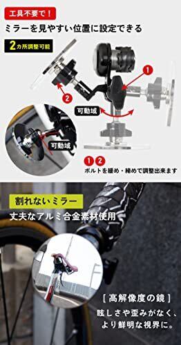 【商品内容】:ミラー(LEDバーエンド付)、コイン形リチウム電池 CR1632【サイズ】:全長約9cm、円形ミラー直径約φ5cm【本体重量】:約55g 【適用バー径】:内径約17.4 - 22mm適用、左右兼用仕様【LEDライト仕様】:ワンボタンON-OFF切替式(点灯点滅)【ミラー仕様】:フラット面、特殊アルミ合金使用 [柔軟な調整が可能]角度調整できるジョイントが二か所。工具不要で調整できのでいつでもすぐに調整ができます。 [割れないミラー]丈夫なアルミ合金素材使用で耐久性に優れています。高解像度の鏡で眩しさや歪みがなくクリアな視界でみやすい。 [LEDライト搭載]視認性が良いライトは安全をプラスアルファ。点灯と点滅の切替が可能でワンクリックで電源ON/OFFが可能。トンネルなど場面にあわせてすぐに点灯させれるのでとても便利。 [バーエンド固定]バーエンドに装着するタイプなので確実に固定します。ハンドルエンドの穴に押し込んでネジを締めれば固定器具がハンドル内で広がり引っ張ってもとれない仕組み。悪路や振動でも外れたりしない。内径17.4-22mm範囲のドロップハンドルやフラットハンドルにも装着できます。